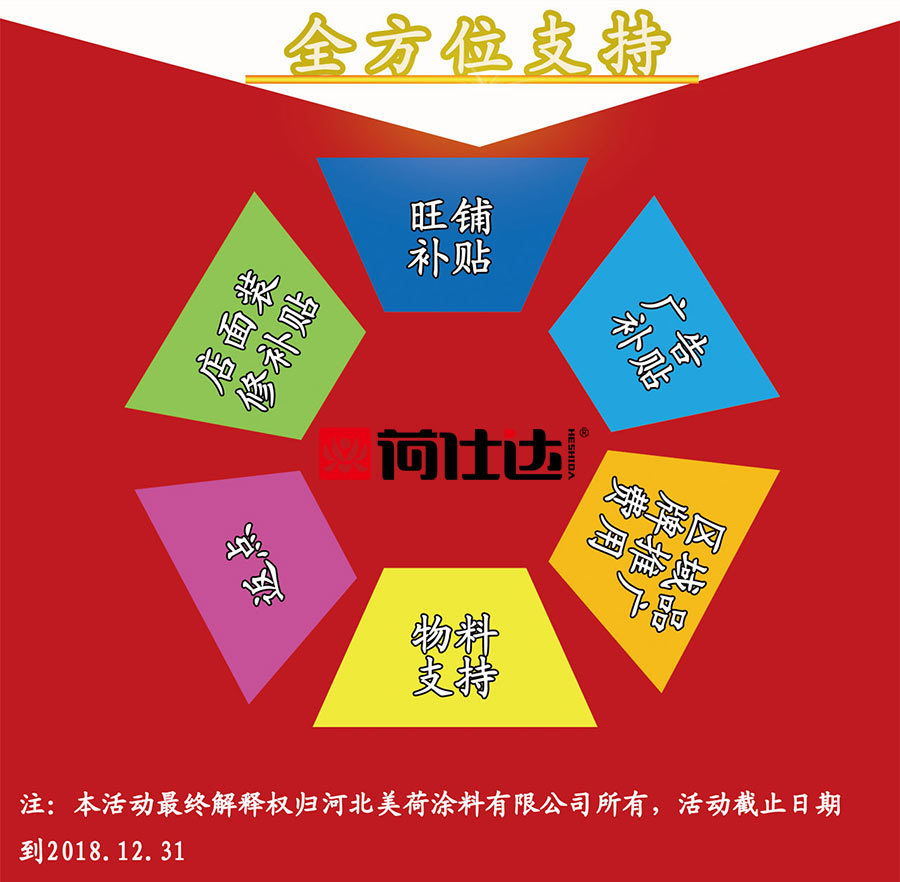 加盟咨詢熱線:400-603-1288 0312-8567666 QQ咨詢:835156686荷仕達(dá)經(jīng)銷商及油工加盟專用公眾號(ID:heshidapaint)